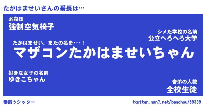 | 伝説のあだ名 | 『封印されしスナイパーたかはませい』 |