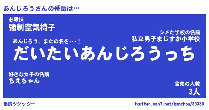 | ヒーロー風カッコイイあだ名 | 『スーパーアンジロウ』『暗黒騎士アン』 |