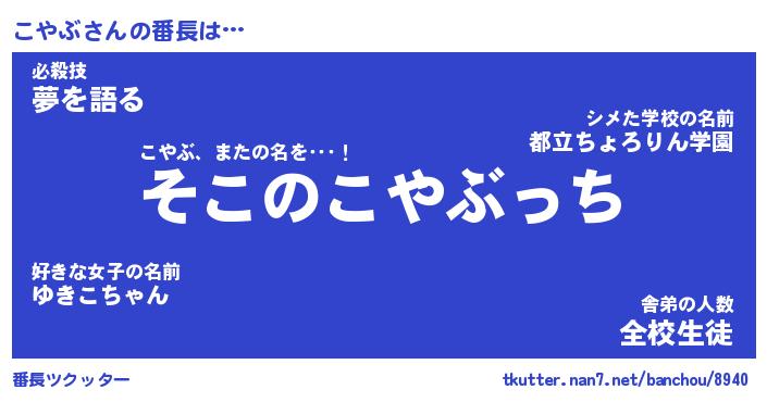 | 意味不明あだ名 | 『ペロリンこやぶ』『こやぶフォーエバー』 |