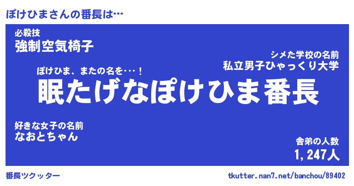 | ヒーロー風カッコイイあだ名 | 『スーパーポケヒマ』『銀牙騎士ポケ』 |