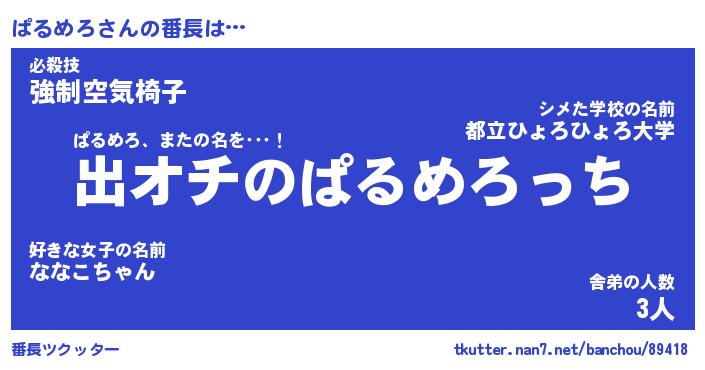 | 意味不明あだ名 | 『ペロリンぱるめろ』『永久保存ぱるめろ』 |