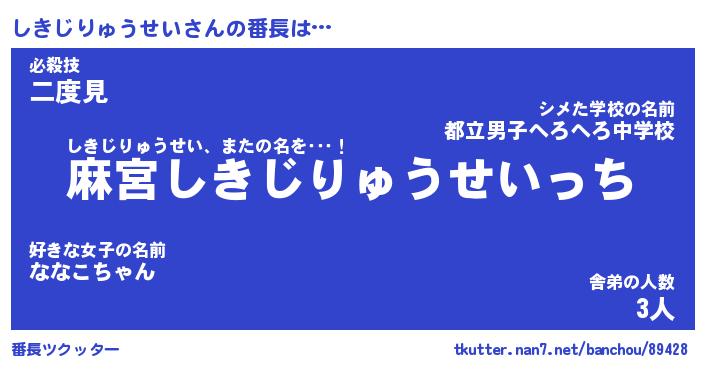 | ヒーロー風カッコイイあだ名 | 『スーパーシキジリュウセイ』 |