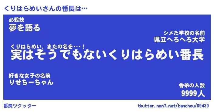 | 胡散臭い通販商品みたいなあだ名 | 『億万長者になれる水晶球…その名も「くりはらめい」』 |
