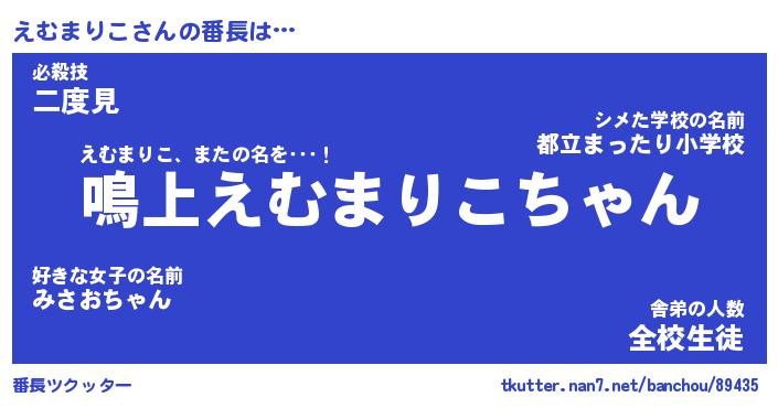 | 肩書あだ名 | 『えむまりこ御曹司』『えむまりこ班長』 |