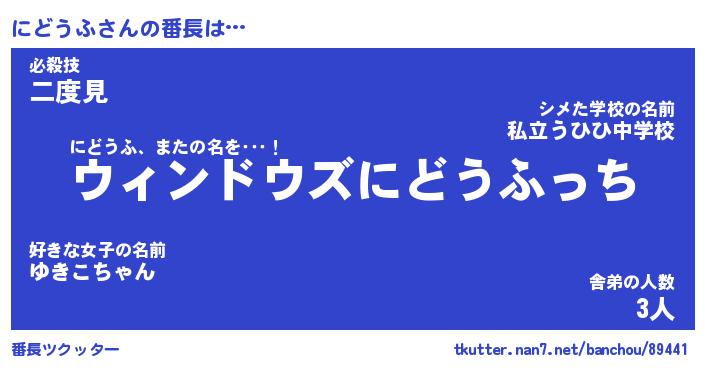 | ヒーロー風カッコイイあだ名 | 『スーパーニドウフ』『天弓騎士ニド』 |