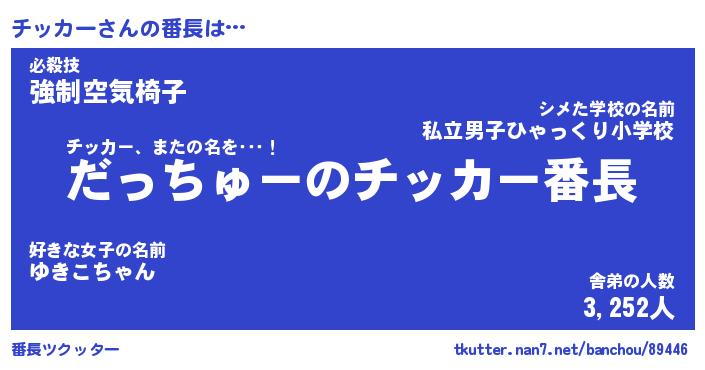 | 意味不明あだ名 | 『ペロリンチッカー』『永久保存チッカー』 |