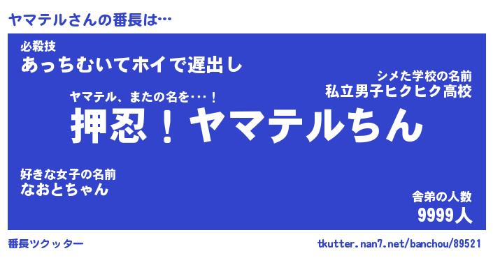 | ヒーロー風カッコイイあだ名 | 『スーパーヤマテル』『天弓騎士ヤマ』 |