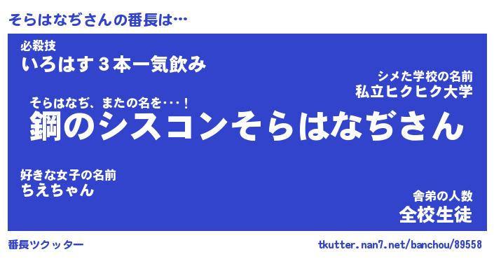 | 肩書あだ名 | 『そらはなぢCEO』『そらはなぢ大統領』 |