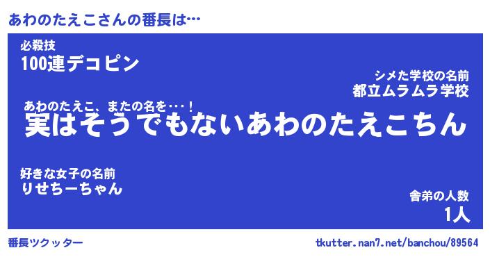 | ヒーロー風カッコイイあだ名 | 『スーパーアワノタエコ』『黄金騎士アワ』 |