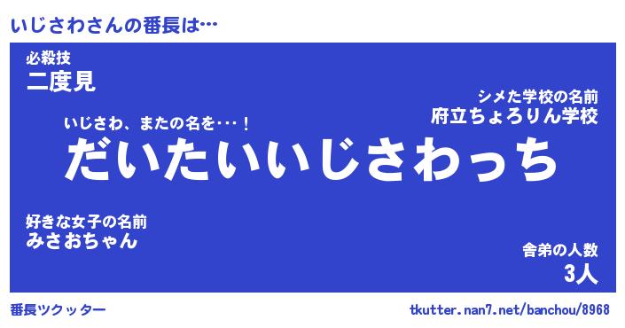| ファンタジー風あだ名 | 『イジフェル』『エターナルイジサワー』 |