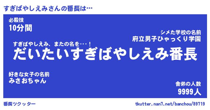 | ヒーロー風カッコイイあだ名 | 『スーパースギバヤシエミ』 |
