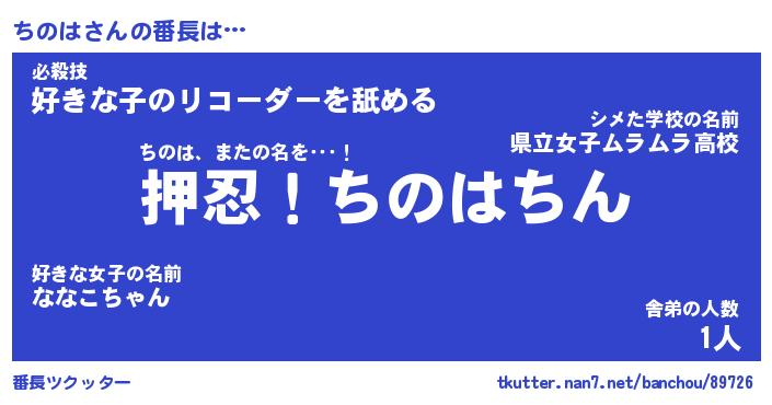 | ヘコむあだ名 | 『ちのにー』『なまこ酢』『ちのお』 |