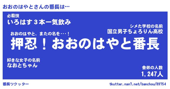 | 肩書あだ名 | 『おおのはやと社長』『おおのはやと班長』 |