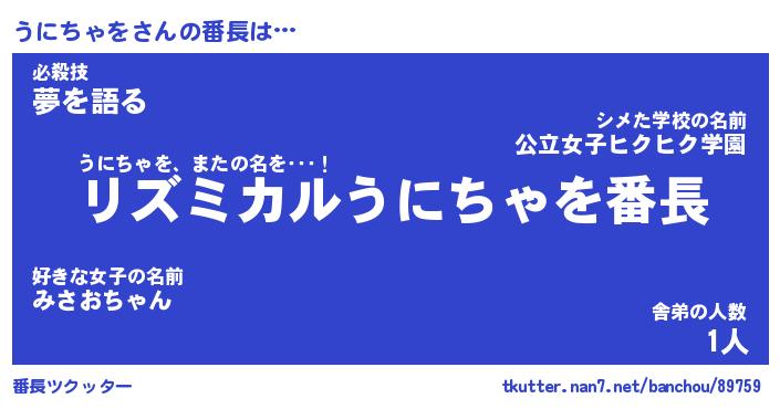 | 男性向けラノベタイトル風あだ名 | 『うにちゃをの憂鬱』 |