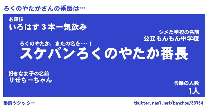 | 意味不明あだ名 | 『ペロリンろくのやたか』 |