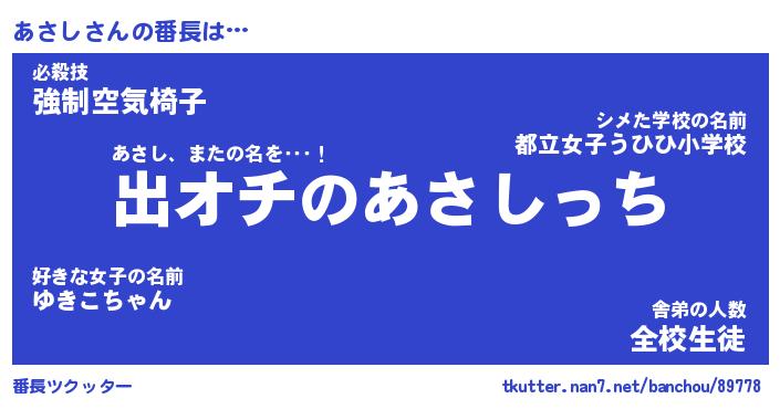 | ポケモン風あだ名 | 『アサチュウ』『アサシダネ』 |