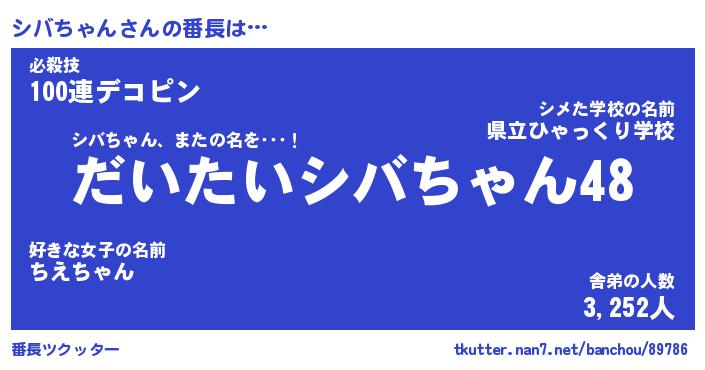 | ファンタジー風あだ名 | 『シバフェル』『エターナルシバチャンー』 |