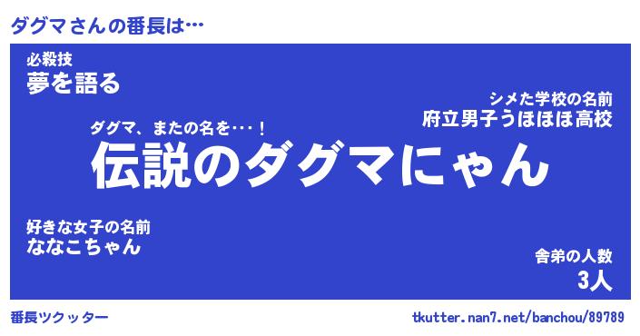 | ヒーロー風カッコイイあだ名 | 『スーパーダグマ』『ウルトラダグママン』 |