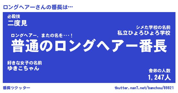 | ヒーロー風カッコイイあだ名 | 『スーパーロングヘアー』『銀牙騎士ロン』 |
