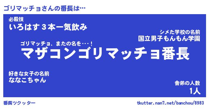 | ヘコむあだ名 | 『ゴリもー』『なまこ酢』 |