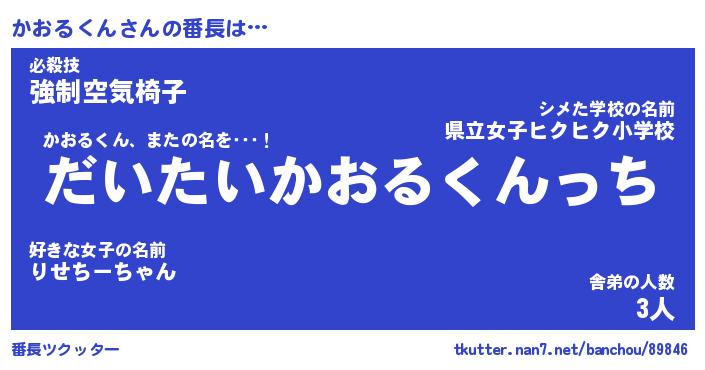 | ヒーロー風カッコイイあだ名 | 『スーパーカオルクン』『黄金騎士カオ』 |