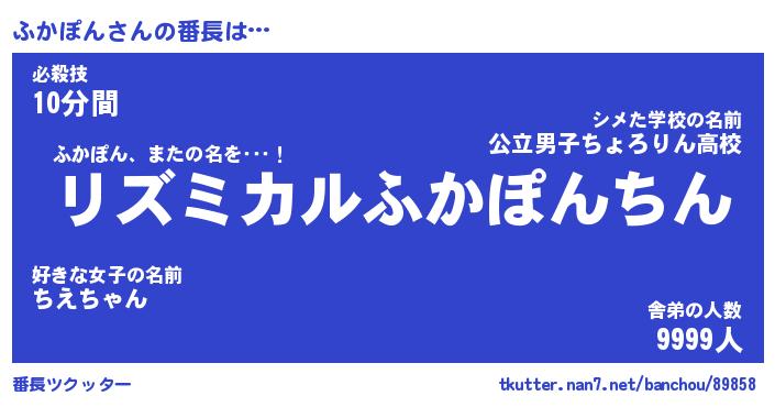 | 意味不明あだ名 | 『ペロリンふかぽん』『永久保存ふかぽん』 |