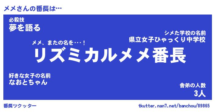 | 肩書あだ名 | 『メメ店長』『メメ国家主席』 |