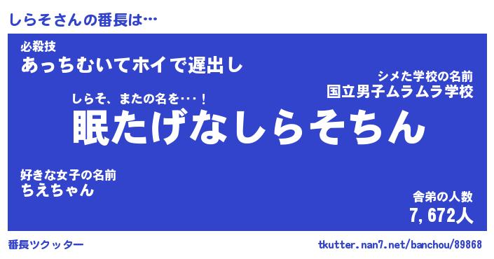 | 意味不明あだ名 | 『ペロリンしらそ』『しらそフォーエバー』 |