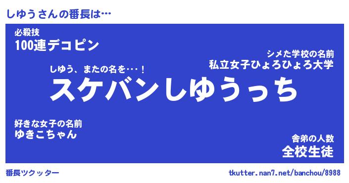 | 意味不明あだ名 | 『ペロリンしゆう』『しゆうフォーエバー』 |