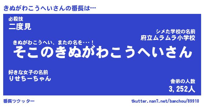 | 男性向けラノベタイトル風あだ名 | 『きぬがわこうへいの憂鬱』 |