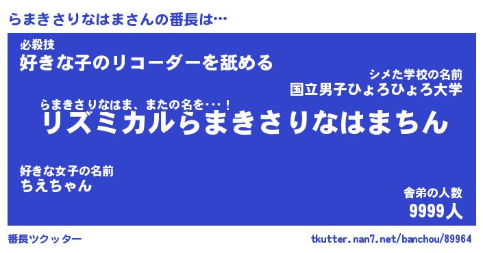 | 肩書あだ名 | 『らまきさりなはま御曹司』 |