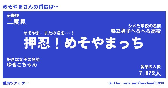 | 意味不明あだ名 | 『ペロリンめそやま』『永久保存めそやま』 |