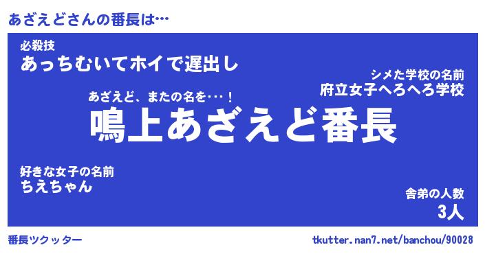 | 意味不明あだ名 | 『ペロリンあざえど』『永久保存あざえど』 |