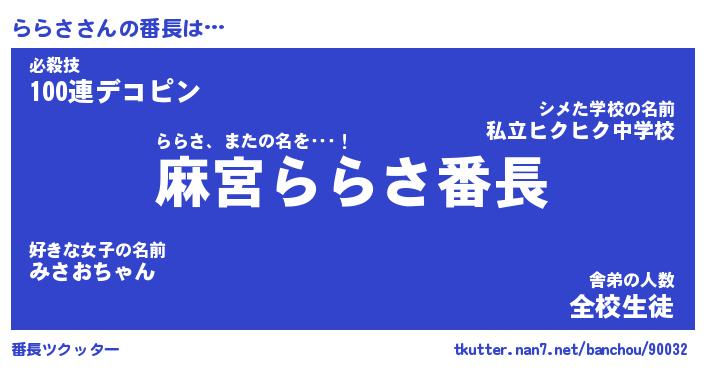 | ヘコむあだ名 | 『ららにー』『豆乳』『らら太郎』 |