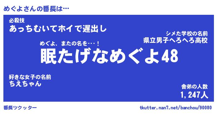 | 2回繰り返すあだ名 | 『めぐめぐ』『めめぐぐ』『ねとねと』 |