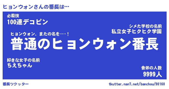 | 男性向けラノベタイトル風あだ名 | 『ヒョンウォンの憂鬱』 |