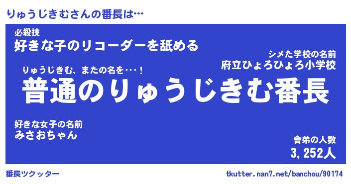 | ヘコむあだ名 | 『りゅもー』『酢こんぶ』『りゅっ子』 |