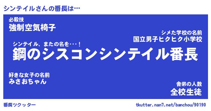 | ヒーロー風カッコイイあだ名 | 『スーパーシンテイル』『暗黒騎士シン』 |