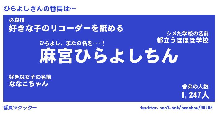 | ピコ太郎風あだ名 | 『ヒコ十郎』『ピヒ五郎』『ヒラ四郎』 |