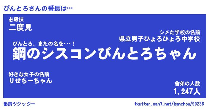 | 意味不明あだ名 | 『ペロリンびんとろ』『永久保存びんとろ』 |
