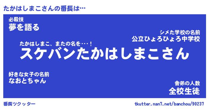 | 肩書あだ名 | 『たかはしまこ社長』『たかはしまこ班長』 |