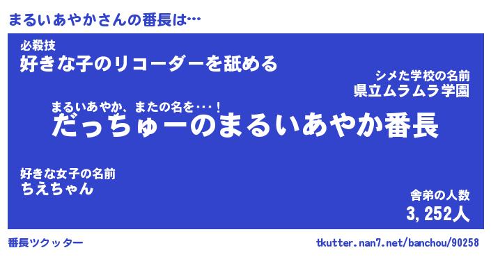 | 伝説のあだ名 | 『伝説のスナイパーまるいあやか』 |