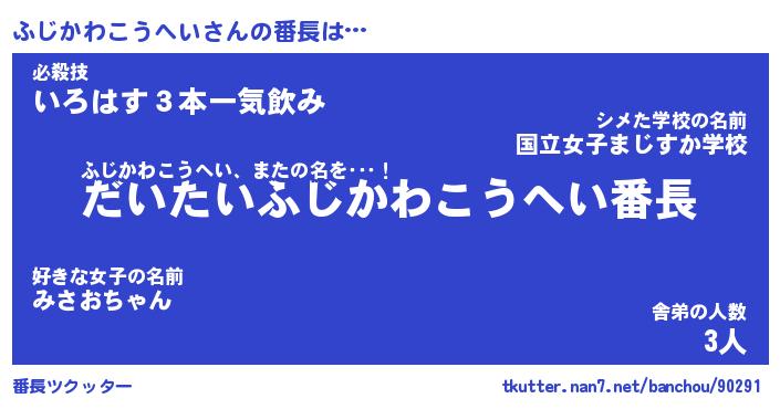 | 伝説のあだ名 | 『不死鳥のスナイパーふじかわこうへい』 |