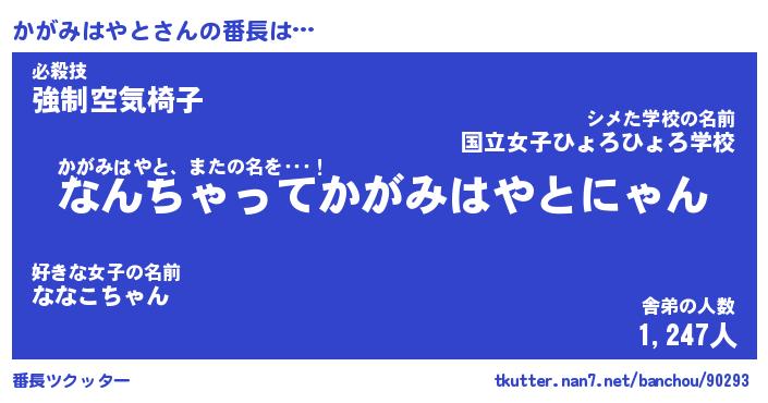 | 胡散臭い通販商品みたいなあだ名 | 『必ず成功する霊験あらたかなお札…その名も「かがみはやと」』 |