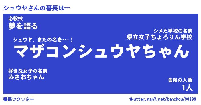 | 意味不明あだ名 | 『ペロリンシュウヤ』『永久保存シュウヤ』 |