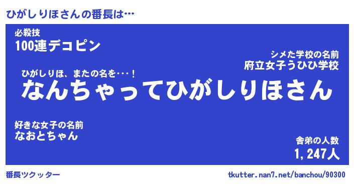 | 伝説のあだ名 | 『伝説のスナイパーひがしりほ』 |