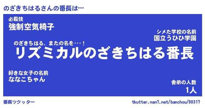 | 男性向けラノベタイトル風あだ名 | 『のざきちはるの憂鬱』 |