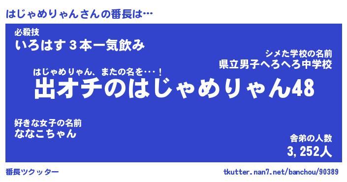 | 男性向けラノベタイトル風あだ名 | 『はじゃめりゃんの憂鬱』 |