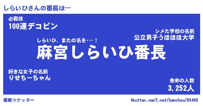 | 肩書あだ名 | 『しらいひ社長』『しらいひ総理大臣』 |