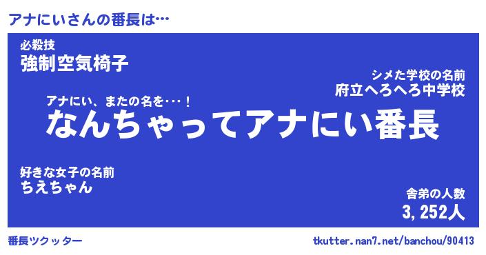 | 意味不明あだ名 | 『ペロリンアナにい』『永久保存アナにい』 |